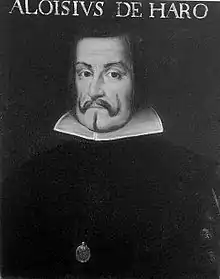 Luis Méndez de Haro, 6th Marquis of Carpio or Luis Méndez de Haro y Guzmán, Grandee of Spain, (in full, Spanish: Don Luis Méndez de Haro Guzmán y Sotomayor de la Paz, sexto marqués del Carpio, segundo conde de Morente, quinto conde y tercer duque de Olivares, segundo marqués de Eliche, primer duque de Montoro, 3 veces Grande de España, Comendador mayor de la Orden de Alcántara, Gran Chanciller de las Indias, Alcaide de las Alcázares de Sevilla y Córdoba, Caballerizo mayor, gentilhombre de cámara y primer ministro de Felipe IV y su gran privado), (1598 – 26 November 1661), was a Spanish nobleman, political figure and general.