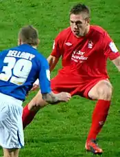 He helped Northampton win promotion to League One in 2006 after finishing second in League Two during the 2005–06 season, following two consecutive seasons in the play-offs.[6] He continued to serve as a first-team regular following Northampton's promotion to League One. His only goal as a Northampton player came against Swansea City in October 2006.[7] He made 34 appearances for Northampton across all competitions during the first half of the 2006–07 season before joining Nottingham Forest in January 2007.[8]