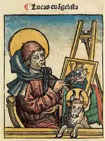 | Attributes | Evangelist, Physician, a bishop, a book or a pen, a man accompanied by a winged ox/winged calf/ox, a man painting an icon of the Blessed Virgin Mary, a brush or a palette (referring to the tradition that he was a painter) |