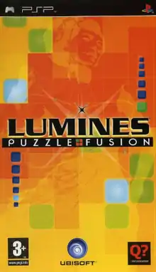 Lumines: Puzzle Fusion[lower-alpha 1] (pronounced as "Loo-min-ess")[1] is a 2004 puzzle game developed by Q Entertainment. It was published for PlayStation Portable (PSP) by Bandai in Japan and by Ubisoft internationally. The objective of the game is to rotate and drop 2×2 groups of blocks in order to create single-color 2×2 squares. A vertical line known as the "time line" sweeps across the field, erases completed squares, and awards points. Each stage has a skin that affects the background, block colors, music, and speed of the time line.