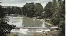Ingersoll's park planning relied on specific "anchor" amusements and taking advantage of scenic location. Ingersoll, himself, described this park as being "of three parts".[15] The "first section" dammed Roaring Brook to form a small lake intended for boating and aquatic sports. Crossing a high footbridge over the gorge, one entered an oval-shape amusement "second section" centered around the "T. Folks Shoot-the-Chutes"[16] pool known as "The Lagoon".[16] Buildings and amusements would change over the life of the park, but initially this was composed of the "Scenic Railway",[17] "H.G. Traver's Aerial Circle Swing", "Scenic River/Old Mill", "Blarney Castle", "Shades and Shadows", "E. Conley's Shooting Gallery", a "Steele MacKaye Scenitorium",[18] "Temple of Mystery",[18] "Edisonia",[18] "Trip to Rockaway",[16] "Dance Pavilion",[16] "J.D. William's Restaurant", a 3-tier "Dentzel Menagerie Carousel",[18] "Williams Ice Cream/Soda Fountain", "Band Stand", and "Circus Platform" (later called "The Hippodrome"). The third section was the picnic grounds with a large "Picnic Pavilion". Other significant attractions were added to the park over time, from the groundbreaking "Hale's Tours of the World" to the more simplistic "Mahoney's Pony Rides". Live vaudeville acts, exhibitions, circus, and orchestra performances were scheduled as free entertainment complementing patrons' visits. Two of the most successful were appearances of the Knabenshue Toledo No. 2 airship,[19] flown by Aviator Lincoln Beachey, and the world-famous leopard act by Dolores Vallecita.[20]