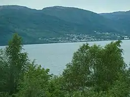 The 26.3-square-kilometre (10.2 sq mi) lake is about 25 kilometres (16 mi) long. It is the eighth-deepest lake in Norway and extends about 268 metres (879 ft) below sea level and since it sits at an elevation of 49 metres (161 ft), the maximum depth of the lake is 314 metres (1,030 ft). This overdeepening, as well as its long and narrow shape, are characteristics of glacially-formed lakes.[2]