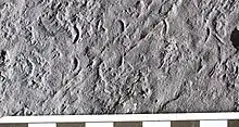 Lunulipes, meaning crescent foot, is an ichnogenus for fossil trackways discovered in shallow lacustrine deposits of the Lower Jurassic Turners Falls Formation of the Deerfield Basin in Massachusetts. These trackways consist of two rows of crescent-shaped tracks, with the tracks in each row arranged one behind the other. Some trackways also exhibit a median furrow. The ichnogenus was originally erected under the name Lunula by Edward Hitchcock,[1] but subsequent workers [2][3] showed that the original name had been used previously for a bryozoan.[4] Getty (2017) subsequently changed the name to Lunulipes, in accordance with International Code of Zoological Nomenclature rules.[5] Only a single species, obscurus, is recognized.
