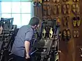 Lurcy-Levy! The clog on the left is the template- and the one on the right is being cut to match.