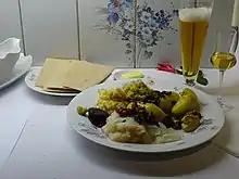 Lutefisk is prepared as a seafood dish of several Nordic countries. It is traditionally part of the Christmas feast; Norwegian julebord and Swedish julbord, as well as the similar Finnish joulupöytä.[2]