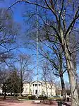 The flagpole has stood in the center of The Circle since 1962. Its brick base was constructed in 2000. During the famous desegregation riots, a former Ole Miss football player climbed the pole in an effort to attract rioters' attention and convince them to go home.[2]