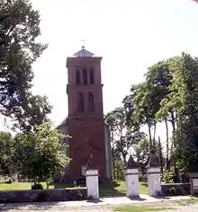 At the time of the November Uprising in 1830–31, Ezechielis Stanevičius, the Raseiniai county's nobility's Maršalka, lived in Lyduvėnai manor.[7] Due to his involvement in the unsuccessful rebellion, the estate was confiscated and a Jewish colony was formed near it.[1][7] During the rule of the Russian Empire, from the 19th century to the 20th century's beginning, Lyduvėnai was the center of the valsčius.[1] During Motiejus Valančius' life, there was a parochial school, which was attended by 17 pupils in 1853.[7] The school was closed by the Russian government after the 1863 rebellion and later Russified.[1] In 1863, the local rebels supporting the January Uprising destroyed the Lyduvėnai valsčius office's documents,[1] in addition to appropriating its chest, which contained 150 rubles.[7] The local Catholic priest, Antanas Opulskis, who supported the insurgents, was arrested, interrogated and exiled to Tunka, where he died in 1872.[7]