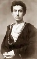 Sedger had an early success with his production of Edmond Audran's La cigale, in an English adaptation by F. C. Burnand with additional music by Ivan Caryll; it ran for 423 performances from October 1890.[25] Apart from a short season by the celebrated Italian actress Eleonora Duse in her first appearance in Britain,[26] Sedger continued with musical works: The Mountebanks by W. S. Gilbert and Alfred Cellier (1892),[27] Incognita (1892), an adaptation of Charles Lecocq's Le coeur et la main;[28] The Magic Opal (1893) by Arthur Law and Isaac Albéniz;[29] The Golden Web (1893) by Stephenson, Frederick Corder and Arthur Goring Thomas;[30] and Little Christopher Columbus (1893) by G. R. Sims, Cecil Raleigh and Caryll.[31] Some of these were critical and artistic successes, but overall they lost money, and Sedger went bankrupt.[32]
