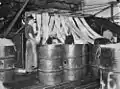 1943-11-11. Gun drill at Lytton. Left to right H. G. Brigg, A. T. Llewellan, B. F. Williams.