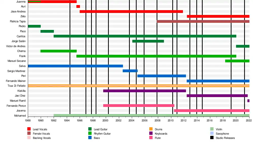 | Members | Txus di Fellatio (1988–) Carlos Prieto "Mohamed" (1992–) J.C. Marín "Carlitos" (1992–) Francisco Javier Gómez de la Serna "Frank" (1996–) Fernando Mainer (2012–) Josema (2010–) Javi Diez (2012–) Patricia Tapia (2007–) Zeta (2012–) Manuel Seoane (2018-) |