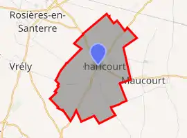 The commune is situated on the D39 and D131 crossroads, 40 kilometres (25 mi) southeast of Amiens, in a small depression of a plateau, the start of the valley of the river Luce.