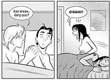 Ménage à 3 (often abbreviated as Ma3) is a webcomic published by Pixie Trix Comix and created by artist Gisele Lagace & Dave Lumsdon, known as Giz and Dave Zero.[1] It was started on May 16, 2008, and ended on April 9, 2019. Set in Montreal, Canada, the webcomic follows the lives and adventures of three roommates in their attempts to find love, success and the pleasures of life. Ménage à 3 is consistently rated amongst the top 50 webcomics annually and has enjoyed success in print in addition to online.