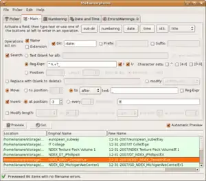 Métamorphose or Métamorphose file -n- folder renamer is an open source batch renamer. The focus is on legibility, usability, and power - there are no codes or formats to remember and all controls are shown, yet rather complicated operations can be done. Because it is written in wxPython, it is very portable, and can run on all major operating systems.
