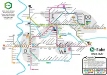 | S 1 | Dortmund – Bochum – Essen – Mülheim – Mülheim-Styrum – Duisburg – Düsseldorf Airport – Düsseldorf – Hilden – Solingen | 30 min |
