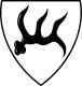The blazon coat of arms reads: "In silver a reclining four-ended black deer rod."