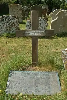 During World War I, Papakura and her husband opened their homes in Oxfordshire and London to injured New Zealand troops, and Papakura installed a memorial to fallen Australian and New Zealand Army Corps soldiers in the chapel at Oddington.[2] In 1924, Papakura moved into Oxford and enrolled to study a Bachelor of Science degree in anthropology at the Society of Oxford Home-Students. She wrote a thesis on Māori culture, which she took to the elders at Whakarewarewa for approval before submitting it. Papakura died suddenly three weeks before her thesis examination, on 16 April 1930 aged 56, from a ruptured aortic artery.[1] She was buried, according to her wishes, in Oddington cemetery; her family in Whakarewarewa erected a memorial to her in the village the following year.[1]