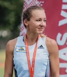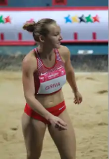 Māra Grīva (born 4 August 1989 in Ventspils) is a Latvian track and field athlete competing in the long and triple jump.[2] She won a bronze medal in the triple jump at the 2017 Summer Universiade.