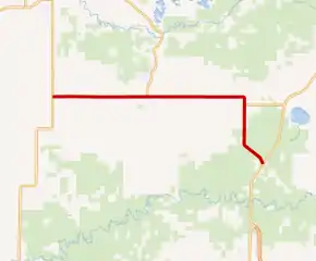 M-113 starts west of Hannah at an intersection with M-37 south of Traverse City. The highway runs eastward through farm fields. In the community of Hannah, the highway passes the church and the cemetery before exiting. On the other side of the town, M-113 continues through more fields to Kingsley. The trunkline follows Main Street through the business district in the village. On the east side of town, M-113 runs through fields mixed with scattered groves of trees. The landscape transitions over to woodland just before a 90-degree turn south near Fife Lake. About one mile (1.6 km) south of the turn, M-113 intersects M-186 at the latter's western terminus. M-113 continues due south past Camp Pugsley Correctional Facility and turns southeasterly.[4][5] The highway crosses a line of the Great Lakes Central Railroad,[6] and then it terminates at US 131 north of the Manistee River and the Grand Traverse–Wexford county line.[4][5]