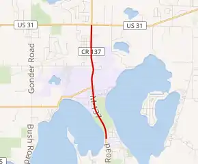 - Michigan Department of Transportation & V3 Consultants (August 31, 2001). "Grand Traverse County" (PDF) (Map). Right-of-Way File Application. Scale not given. Lansing: Michigan Department of Transportation. Sheet 25. Retrieved June 25, 2012.