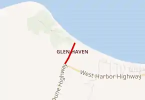 From its inception in the 1920s, M-209 was Michigan's shortest highway.[2] It connected the small community of Glen Haven to M-109 just south of the community. Glen Haven was founded as a settlement called Sleeping Bearville with a sawmill[8] and an inn, the Sleeping Bear House, in 1857.[9] By 1881, there were 11 buildings in the community. The lifesaving station was built in 1901 and moved to its present location in 1931 before closing in 1941.[8] M-209 was first assumed as a state trunkline in the 1920s. It would later serve the national lakeshore when the park was created on October 21, 1970. The Park Service purchased all of the village by the mid-1970s. The highway was turned over to Leelanau County control on June 5, 1996.[1] It is now known only as Glen Haven Road.[10] Since the transfer, M-212 in Cheboygan County is now the shortest highway in the state.[11]