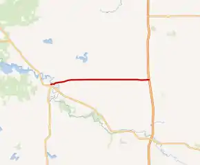 M-222 begins at an intersection with M-40/M-89 in the town of Allegan at the corner of Cutler and Cedar streets. From there, the trunkline runs northward on Cedar Street for a block before turning eastward on Monroe Street. Then the highway proceeds through residential areas along Monroe and turns onto Grand Street to cross over the Kalamazoo River. M-222 intersects A-37 (Main Street) and runs next to Padgham Field before exiting town. From there, the highway continues on due eastward as 116th Avenue through rural areas and agricultural fields. Further east, the fields are taken over by forested area and residential subdivisions in places near Watson. The trunkline jogs to the south to bisect Wetheral Lake. M-222 ends north of US 131 Motorsports Park near exit 55 on US 131 east of Martin.[4][5]