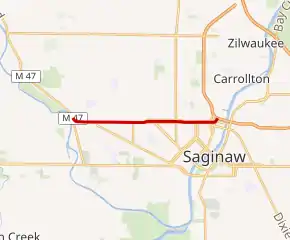 M-58 is a 5.108-mile-long (8.221 km) east–west state trunkline highway in the US state of Michigan that runs from M-47 in Saginaw Township east to exit 3 of Interstate 675 (I-675) near the north part of downtown Saginaw. The trunkline follows State Street through the Saginaw area, and east of Lathrop Avenue, M-58 is split along two streets, using Davenport Avenue as well. This is the third time that the number has been used on a highway in Michigan; the first two were used in the Berrien County and Pontiac areas. The Saginaw version was designated in 1971, and it is listed on the National Highway System.