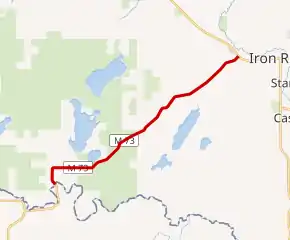 M-73 is a north–south state trunkline highway in the Upper Peninsula of the US state of Michigan. It connects with US Highway 2 (US 2) and Highway 55 (WIS 55) at the state line near Iron River. Running through forest, the highway was first designated along with the rest of the state highway system in 1919. Unchanged since its inception, M-73 was completely paved by the mid-1930s.