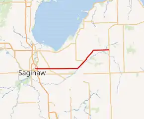 When originally signed around July 1, 1919, M-81 ran from Bay City southeast and east to the Munger area; from there it ran south concurrently with M-31 to the Reese area before running northeasterly to the east of Cass City to M-53.[2] By 1921, the eastern end was extended southerly from Caro to Mayville along a highway that is now part of M-24.[9] In late 1926, the western end was changed so that M-81 followed the former M-31 from Reese into Saginaw and the eastern end was rerouted from Caro northeasterly to the Cass City area. With the exception of the routing through downtown Saginaw, the highway followed the approximate routing of the current highway.[10][11]