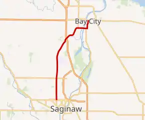M-84 is a north–south state trunkline highway in the Lower Peninsula of the US state of Michigan. The highway starts on the west side of Saginaw at an intersection with M-58 and runs north through residential and commercial areas. There are two colleges or universities near the trunkline as it connects Saginaw with Bay City, providing an alternative to the freeway that carries Interstate 75/US Highway 23 (I-75/US 23). The northern terminus is at a pair of intersections with M-25 on the east side of the Saginaw River in Bay City.