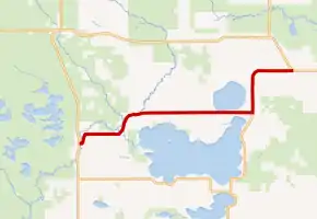 M-98 started at a junction with M-77 in Germfask next to the Seney National Wildlife Refuge, a managed wetland in Schoolcraft County. The highway followed Ten Curves Road east and then north out town. The trunkline turned back due east and crosses the Fox River before a set of curves that shifted the highway along the Schoolcraft–Luce county line to pass north of Big Manistique Lake. Ten Curves Road passes between the Big and North Manistee lakes as it enters the community of Helmer in Luce County. There, M-98 intersected M-135, and the two ran concurrently north along Manistique Lakes Road. M-98/M-135 turned due east to intersect M-28 southwest of McMillan near East Lake.[1][3]