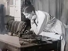 Rope was educated at Wimbledon High School, Chelsea School of Art, and the LCC Central School of Arts and Crafts, where she specialised in stained glass under Karl Parsons and Alfred Drury. From about 1911 she worked at The Glass House (Fulham) with her cousin, Margaret Agnes Rope, for example on the set of windows for SS Peter and Paul, Newport, Shropshire.[1] To distinguish herself from her namesake cousin, she used the professional name of M. E. Aldrich Rope (incorporating her mother's maiden name) or M. E. A. Rope. One of her friends was J. Harold Gibbons (church architect) and this connection led to her first major commission for St Chad's Church, Far Headingley, Leeds, which is among her greatest works.[2][3]