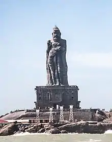 During his political career, Karunanidhi advocated for increased state autonomy and affirmative action to favour lower castes.[11] He implemented a caste-based quota system for government employment and government school students, as well as subsidies to the poor. His initiatives were quickly adopted in other Indian states. His initiatives earned him popularity among the lower castes.[8] He was frequently confronted with accusations of nepotism.[12] He has also stirred controversies by publicly supporting the LTTE and other separatist groups in Sri Lanka.[20] During his different tenures, he implemented a number of initiatives aimed at promoting the expansion of industry in the state.[10] He was also instrumental in erecting a 133-foot monument of Thiruvalluvar in Kanyakumari[10] and ensuring classical language status to Tamil language.[21]