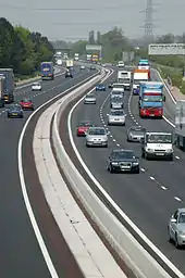 The M18 was originally to be part of the M1, but it was decided to route the M1 towards Leeds instead of Doncaster, and the routing of what would have been the M1 east of Sheffield became the M18.[1] In order to provide better access to Doncaster town centre and the new Great Yorkshire Way to Doncaster Sheffield Airport, the section of the M18 between junctions 2 and 3 northbound was upgraded to 3 lanes, between 20 June 2014 and 12 June 2015.[2]