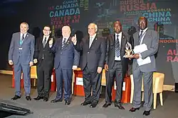 The prize has symbolically been accepted by Abdel Rahman Shalgham, the representative of the Free Libya at the United Nations. The prize was handed out by Zimbabwean Prime Minister Morgan Tsvangirai, the 2008 laureate of the MEDays Grand prize who had pulled out of a contested run off in the 2008 presidential elections in Zimbabwe.