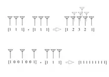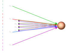 In order to make a comparison between phased array radars and MIMO radars, the relationship between transmit/receive antenna arrays and virtual arrays are discussed in several sources.[3][4] If the placements of the transmit and receive antenna array are expressed as two vectors and respectively, the placement vector of the virtual array is equal to the convolution of and :