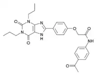• CCCN1C2=C(C(=O)N(C1=O)CCC)NC(=N2)C3=CC=C(C=C3)OCC(=O)NC4=CC=C(C=C4)C(=O)C