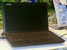 The MSI Wind Netbook was a family of subnotebooks / netbooks designed by Micro-Star International (MSI). Wind stands for "Wi-Fi Network Device". The first model was announced at CeBIT 2008,[1] and first listed for pre-orders on May 9, 2008.[2] While initially 8.9- and 10.1-inch screen versions existed, as of 2010 only the 10.1" remained, with a resolution of 1024×600. While most models had 1 GB of RAM, some had 2 GB, and hard disks ranged from 80 GB on the oldest to 250 GB on the newest models. Also featured were Bluetooth, WLAN and a 1.3 megapixel camera. The Wind PC was MSI's response to the successful Asus Eee PC.[3] The keyboard was 92% of full-size.