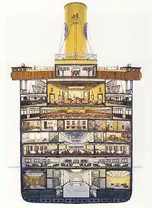 In 1964, the ship was sold to the Canaveral International Corporation for use as a 500-room floating hotel[15] in Freeport, Bahamas. The ship was renamed Imperial Bahama, while the hotel complex with a 9-acre golf course, 4 tennis courts, a shopping center and a marina, was known as the Imperial Bahama Hotel.[16] In 1965 the Imperial Bahama was scrapped at Bilbao.[9]