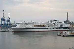 MS La Superba is a cruiseferry owned and operated by the Italian ferry company Grandi Navi Veloci. It was built at Nuovi Cantieri Apuania in Marina di Carrara, Italy.[1] When it entered service, La Superba was the largest passenger ferry operating in the Mediterranean, and one of the largest in the world; joined in the following year by the sistership La Suprema, it was surpassed in 2008 by Cruise Roma of Grimaldi Ferries. Its building costed about 120 million dollars.[2]