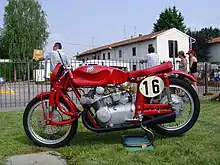 Piero Remor had developed racing engines for the Gilera brand before World War II. In addition to a supercharged 500cc four cylinder engine, he also built a 250cc four cylinder. After the war, he based a new 500cc machine on the pre-war designs. The new racer was tested for the first time in 1948. This Gilera 500 4C did not perform well, but Remor refused to make changes and put the blame on the riders. In 1949 he was fired by Giuseppe Gilera. Piero Taruffi became responsible for the development of the Gilera, which became the most successful racing engine in the 1950s. Piero Remor was hired by Count Domenico Agusta to develop racing engines for MV Agusta. Remor brought rider Arciso Artesiani[1] to MV Agusta and first developed the MV Agusta 125 Bialbero. This was necessary because MV Agusta only had a 125 cc two-stroke that couldn't compete with Mondial and Moto Morini in this class. On 1 May 1950, engineer Arturo Magni also came to MV Agusta and became responsible for the further development of the racing engine. Magni had previously worked with Remor at Gilera from 1947.