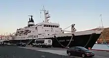 MV Lyubov Orlova (built as Lyubovy Orlova)[2] was a 1976 Yugoslavia-built ice-strengthened Maria Yermolova-class cruise ship, which was primarily used for Antarctic cruises. After being taken out of service in 2010, she sat in St. John's, Newfoundland, Canada for two years. Decommissioning was fraught with problems and the ship eventually became a floating derelict in the North Atlantic Ocean in 2013. She is believed to have sunk.[3][4]