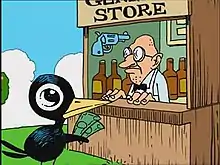 An animated television pilot for The Drinky Crow Show, based on the Maakies characters, premiered on Cartoon Network's Adult Swim on May 13, 2007.[9][10] Dino Stamatopoulos provided the voice of the titular character, and They Might Be Giants performed the show's theme song. The show premiered on Adult Swim on November 23, 2008 and ran for one season containing ten episodes. It ended on January 25, 2009. The cancellation of the show was confirmed by a Maakies comic.