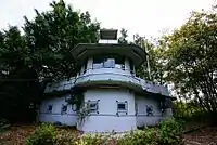 The MacIntosh Forts were built along the Sham Chun River when an influx of Chinese refugees was followed by border incidents of armed clashes between the police and refugees.[2] Amongst the refugees were the defeated remnants of the Kuomintang Nationalist armies and also a "fair number of common criminals".[3] The Forts were built in reinforced concrete of the same style and of very similar design, which may be categorized as Modern Utilitarian.[2] Built on hilltops at strategic spots, with a view across the border, they were dubbed the Macintosh Cathedrals because of their distinctive appearance and outline against the skyline.[3] Six out of the seven Forts are now remotely controlled.[1] They are not open to public.[4]