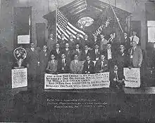 First Macedonian associations in the United States date back to 1899, with the foundation of the "Macedonian-Bulgarian Society Vasil Levski". Other associations include "Bulgarian-Macedonian American Committee" founded in 1904, "Nadezhda" founded in 1908, etc. In September 1913, delegates from Macedonian organizations in the United States and Canada gathered in Chicago, Illinois to form a Macedonian-Bulgarian National Union. The union published the newspaper "Svoboda", and had as its objective the autonomy for Ottoman Macedonia and the Adrianople area. Some members of these organizations participated in the Balkan Wars as volunteers in the Macedonian-Adrianopolitan Volunteer Corps[11]