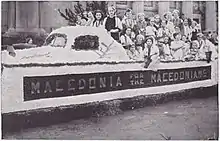 MPO's Articles of Incorporation from 1925 defined its purpose as follows: "For the mutual assistance and protection of people of Macedonian race - and for the liberation of Macedonia from political entities - and to foster the ancient right of Macedonia as a state and nation - all as more fully set out in its bylaws[.]"[13] Throughout the next several annual conventions, the delegates finalized the organization's bylaws. The unchanged fundamentals of this document are still guiding the MPO into the third millennium. The first article of the MPO bylaws states: "The Macedonian Immigrants of the United States and Canada, as well as their descendants, regardless of nationality, religion, sex or convictions, realizing the necessity of joint organized activity for the liberation of Macedonia, formed the Macedonian Patriotic Organization with the slogan 'Macedonia for the Macedonians'." The historic phrase "Macedonia for the Macedonians", which was adopted as an official slogan of the MPO, was a proclamation of William Gladstone, who in 1897 expressed his views on the Macedonian Question.