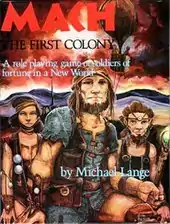 Mach: The First Colony was designed by Michael Lange with Martin Miller, and published by Alliance Publications in 1983 as a boxed set containing a 32-page book, a 32-page book, and a 16-page book.[1]
