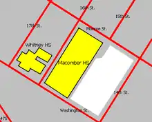 Irving E. Macomber Vocational Technical High School was a vocational public high school in Toledo, Ohio, USA, from 1938[1] to June 1991. It was named for the man who helped develop the city's schools and parks, and who used to live on the property the school was built on.[1] Macomber served the entire city and was part of the Toledo Public School District. The school began as Vocational High School in the original Toledo high school in 1927[2] before moving to its location on Monroe Street in 1938.[3] In 1959 the school became joint-operational with Whitney High School, an all-girls vocational school located just across 16th St., and the two buildings came to be known as Macomber-Whitney.[4] The building still sits on Monroe Street, just northwest of Fifth Third Field.