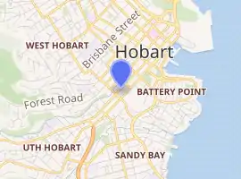 Macquarie Street a major one way street passing through the outskirts of the Hobart Central business district in Tasmania, Australia. Macquarie street is named after Lachlan Macquarie, who oversaw the planning of Hobart’s inner city grid layout. The street forms a One-way couplet with nearby Davey Street connecting traffic from the Southern Outlet in the south with traffic from the Tasman Highway to the east and the Brooker Highway to the north of the city. With annual average daily traffic of 28,500,[1] the road is one of the busier streets in Hobart.