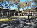 The initial concept of the campus was to create a new high technology corridor, similar to the area surrounding Stanford University in Palo Alto, California, the goal being to provide for interaction between industry and the new university.[8] The academic core was designed in the Brutalist style and developed by the renowned town planner Walter Abraham who also oversaw the next 20 years of planning and development for the university. A committee appointed to advise the state government on the establishment of the new university at North Ryde nominated Abraham as the architect-planner. The fledgling Macquarie University Council decided that planning for the campus would be done within the university, rather than by consultants, and this led to the establishment of the architect-planners office.[9]