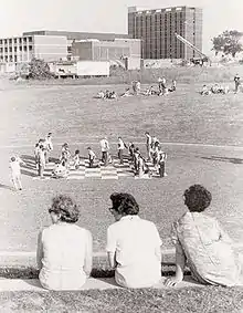 Macquarie grew during the seventies and eighties with rapid expansion in courses offered, student numbers and development of the site. In 1972, the university established the Macquarie Law School, the third law school in Sydney. In their book Liberality of Opportunity, Bruce Mansfield and Mark Hutchinson describe the founding of Macquarie University as 'an act of faith and a great experiment'.[15] An additional topic considered in this book is the science reform movement of the late 1970s that resulted in the introduction of a named science degree, thus facilitating the subsequent inclusion of other named degrees in addition to the traditional BA.[16] An alternative view on this topic is given by theoretical physicist John Ward.[17]